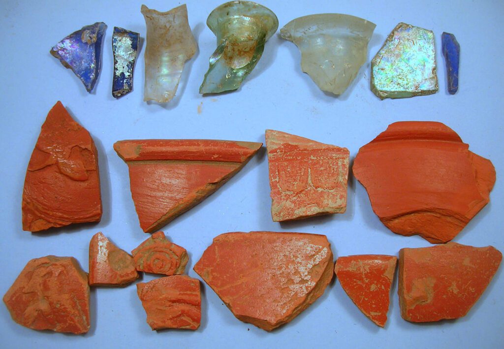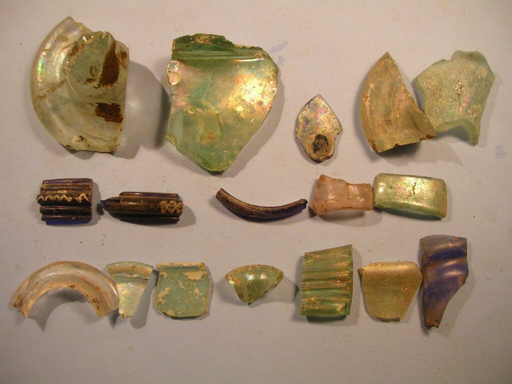 Római üvegedények és ékszerek töredékei