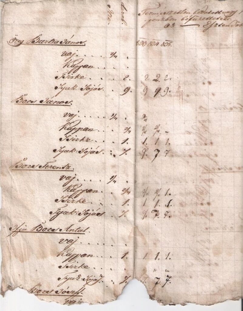 Részlet Esterházy herceg jobbágyainak adólajstromából