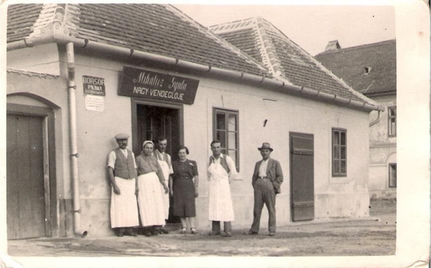 A háború előtt több kocsma is üzemelt a faluban, a képen Goda Sándor vendéglője a Fő utcán a mai főkút mögötti telken