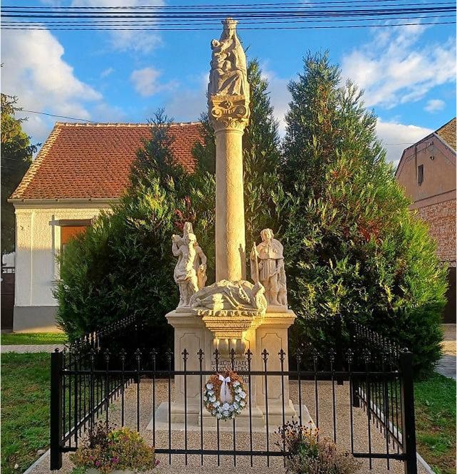 Elesett fiai emlékére állíttatta képviselőtestületünk határozata folytán falunk népe a temetőben lévő hősi emlékművet, amelynek 892 pengős költségét Pokker Mihály igazgató-tanító és vitéz Boha Kálmán gyűjtötték össze. Iskolás gyerekeink színielőadásai-nak jövedelme, majd a Tűzoltó Egyesület és Tschida István számottevő adományai kerekítették ki ezt az összeget. Kegyeletes ünnepség keretében leplezték le a temetőnkben felállított emlékművet.