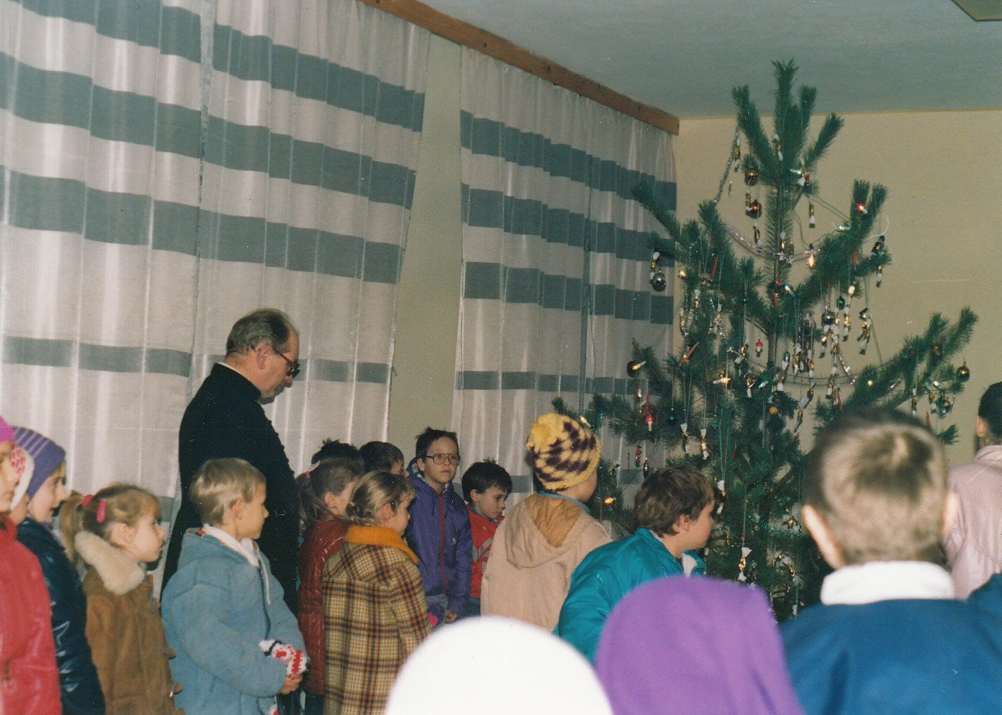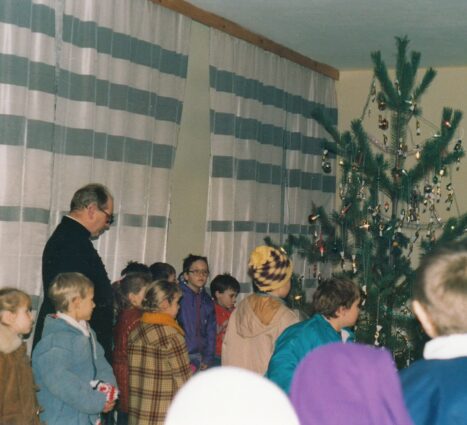 A hittanos gyermekeket a plébánia hivatalban karácsony előtt feldíszített karácsonyfával várták a karitász tagok és egyben minden gyereknek ajándékcsomaggal kedveskedtek.