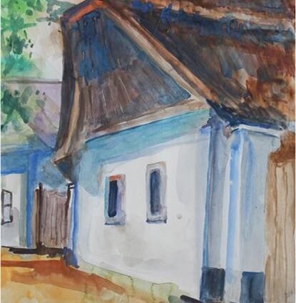 A „Magány” című akvarell festménye (1990), arra emlékeztet, hogy az emberek a nagyvárosokban kerestek megélhetési forrást, mert a föld közös tulajdona nem adott friss kenyeret. Akkor sokan a falujukhoz ragaszkodó népesség házaikkal együtt sorstalanokká váltak. A kiüresedett házakat pl. a vadvirágzás búcsúzó hangulata vette birtokába. Sorsukra már az enyészet várt. A képen érzékeltetett távoli szomorú nyárfa és égersorok fogságában nagyecsetes felhőfellegek zuhantak az elvékonyuló tetőzetre. A ház folyosójának végén, a gádorban kibillent létra már nem vezetett fel a padlásra. Itt érezhetjük a magány igazi mementóját. A kerti virágok el-elburjánzó koszorújában, az elmúlt idők romantikája sugárzik vissza a távoli generációk világából.